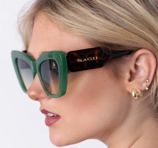 Bardot Cat-Eye Sunglasses in Green/Tortoise